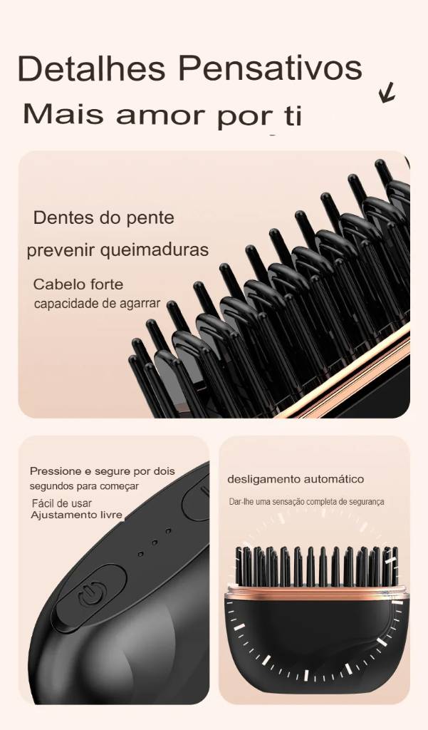 Escova Alisadora Portátil Recarregável – Praticidade, Estilo e Liberdade para Seus Cabelos 💖🖤
