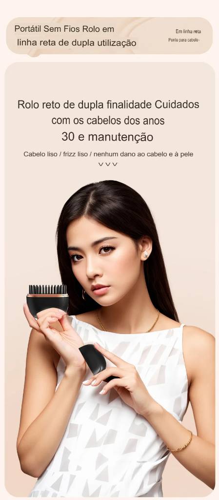 A Escova Alisadora Portátil Recarregável foi criada para quem busca praticidade no dia a dia sem abrir mão de um cabelo bonito, alinhado e com aparência saudável. Compacta, moderna e extremamente funcional, ela é perfeita para todos os públicos e para qualquer rotina — seja em casa, no trabalho, em viagens ou até mesmo para aquele retoque rápido antes de um compromisso importante.